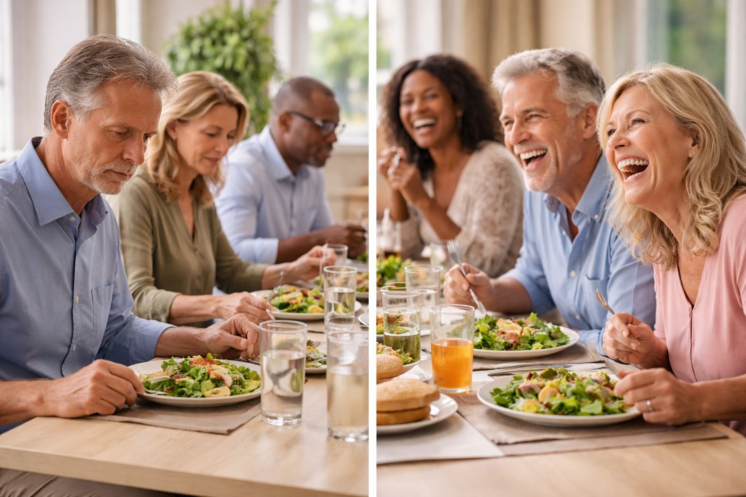La risa real, no la sonrisa de foto de cédula, reduce el cortisol, mejora la sensibilidad a la insulina y activa el sistema nervioso parasimpático, ese que le dice al cuerpo que puede procesar tranquilo lo que acaba de recibir. Porque el problema no es solo lo que comes, es en qué estado biológico lo comes.