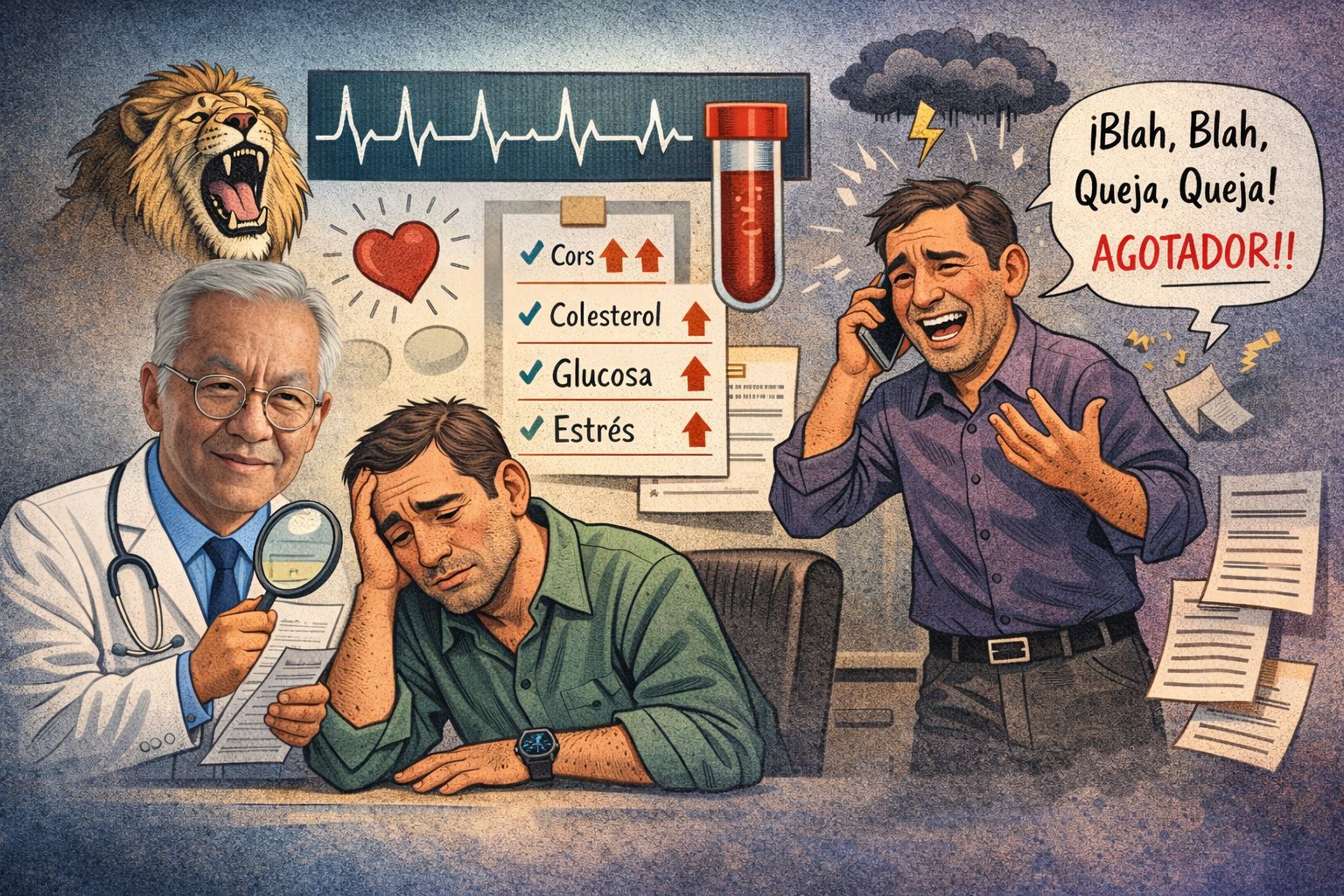 Ahí es donde empieza lo interesante. Porque de pronto aparecen esas “cositas” en los exámenes… proteína C reactiva elevada (que habla de inflamación crónica de bajo grado), frecuencia cardíaca inadecuada, aumento progresivo del abdomen y otros numeritos que el paciente ve normales, pero que cuentan otra historia: un organismo en riesgo por vivir en modo alerta permanente.